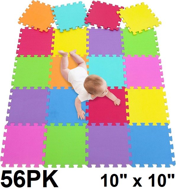 56pk interlocking puzzle playmat tiles - 10" x 10" each tile - multicolour