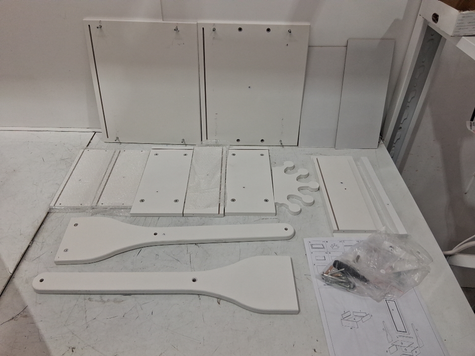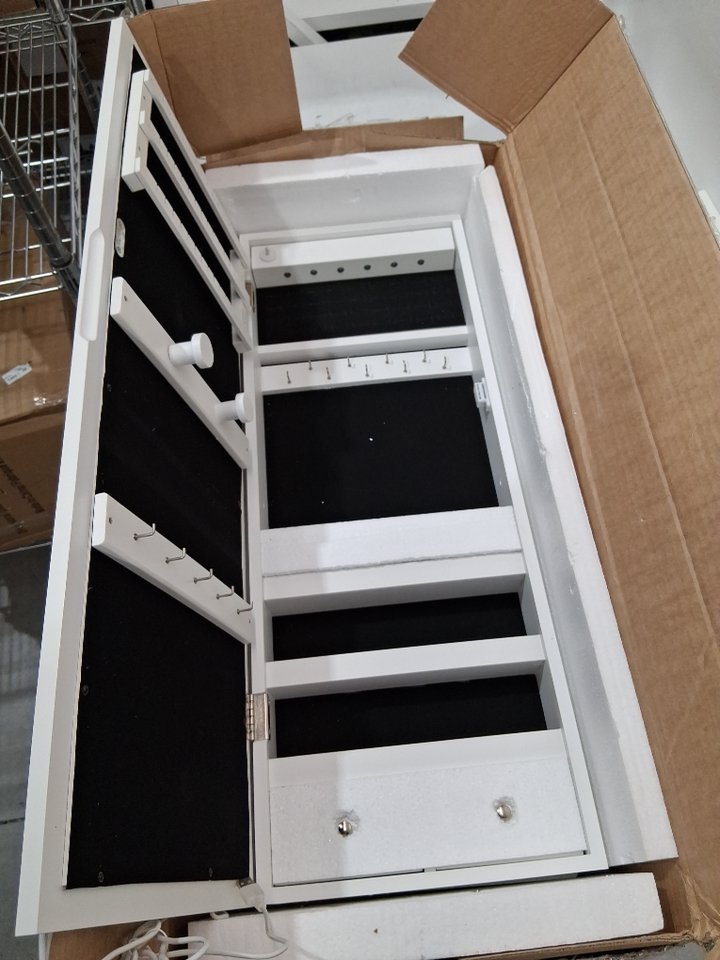 Please note that there is a large crack in the mirror at the top right side (See photos). There are also scratches on 2 of the boards due to being previously assembled (see photos). Tested for power/function.