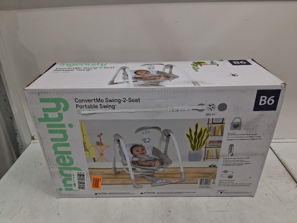 Ingenuity 2-in-1 convertme compact portable baby swing & seat with vibrations & nature sounds - battery powered - 20lbs max- raylan theme/grey (model: ‎12189)