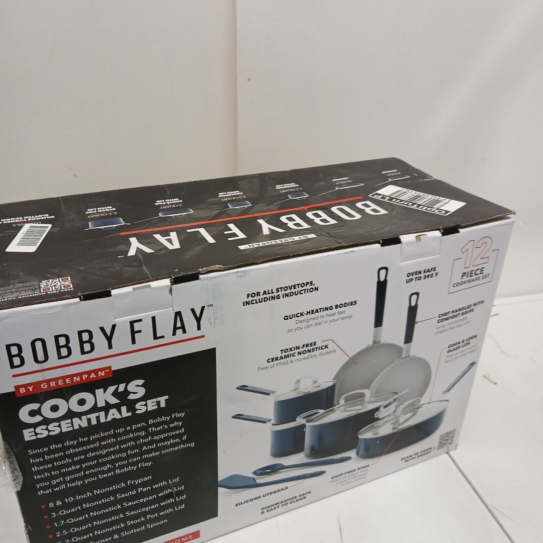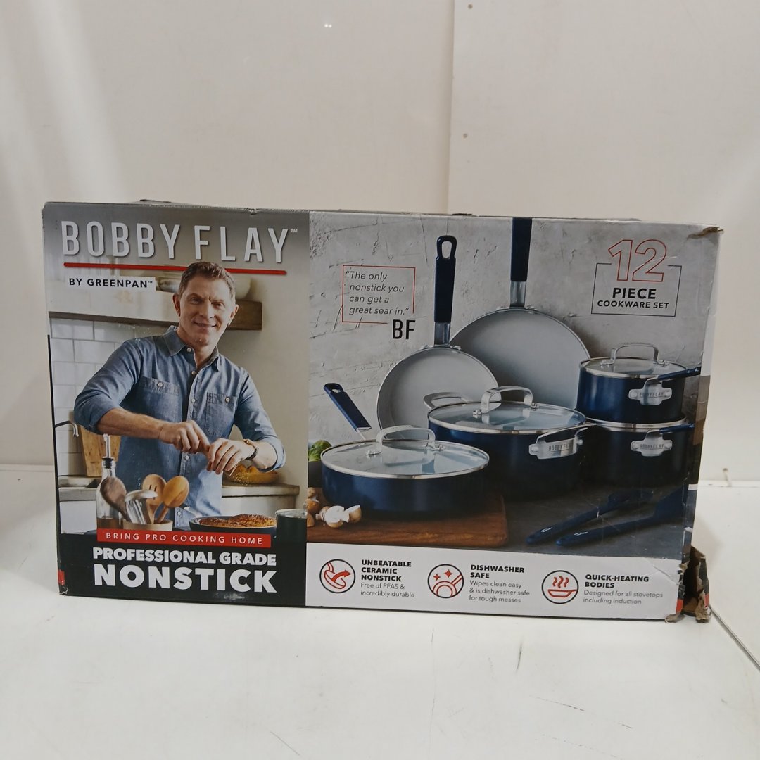 12PC BOBBY FLAY BY GREENPAN PROFESSIONAL GRADE NON-STICK CERAMIC COOKWARE SET, DISHWASHER SAFE - OXFORD BLUE
