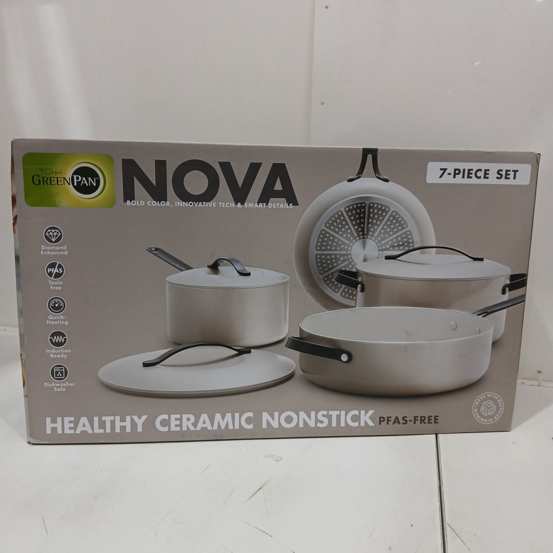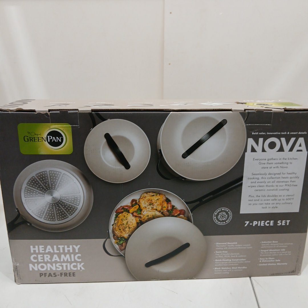 7PC THE GREEN Pan nova ceramic non stick aluminum cookware set - clay, light grey (Model: 8620-004)