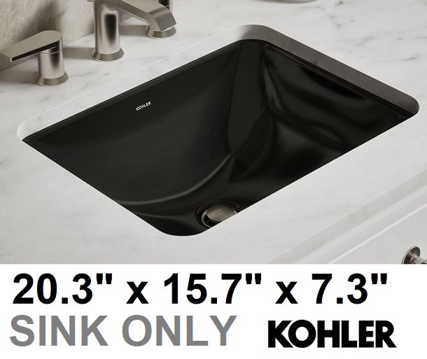 KOHLER CAXTON RECTANGULAR undermount bathroom sink - 20.3" x 15.7" x 7.3" - Black (Model: 20000 - 7)