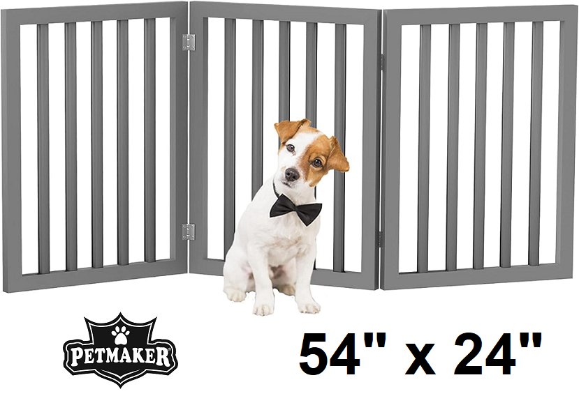 PETMAKER Freestanding Foldable 3-Panel Wooden Pet Gate Designed For Small Dogs/Puppies - 54" X 24" - grey