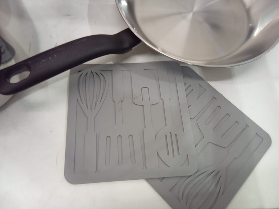 there is minor marks on the pots\pans and the mats have stains as well. see photos.