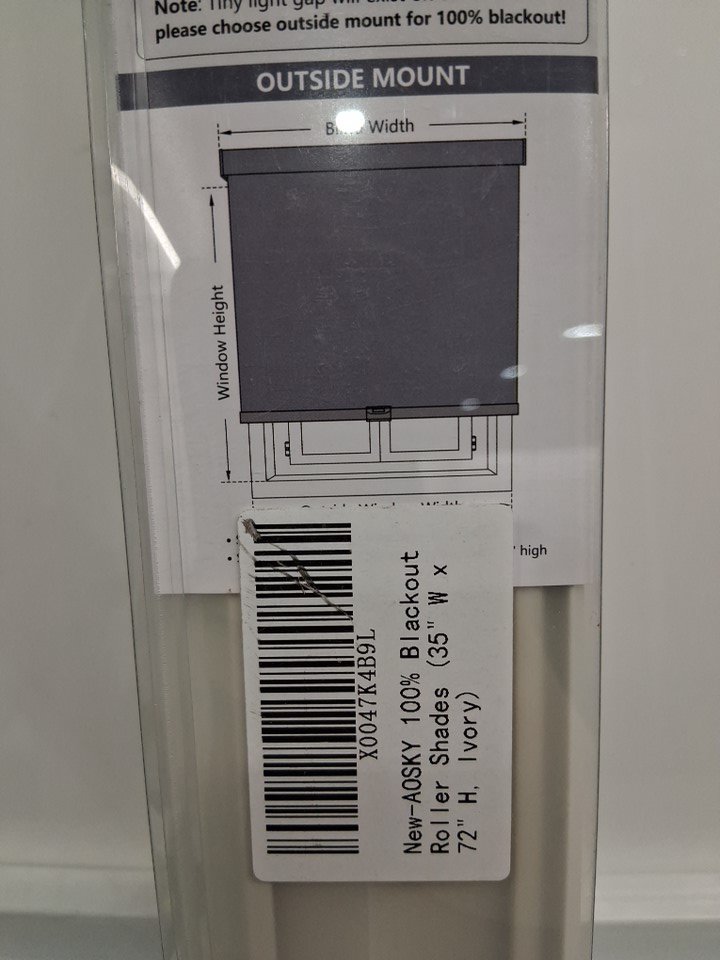 AOSKY CORDLESS blackout ROLLER window SHADES - 35'' X 72'' - IVORY