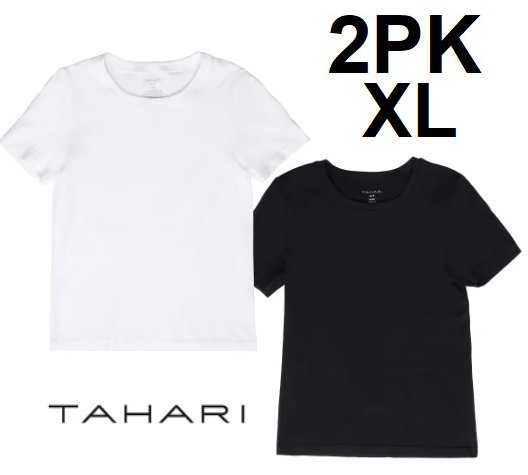 2pk women's tahari ribbed cotton short sleeve tshirt - extra large - black / white (style: 2868743)