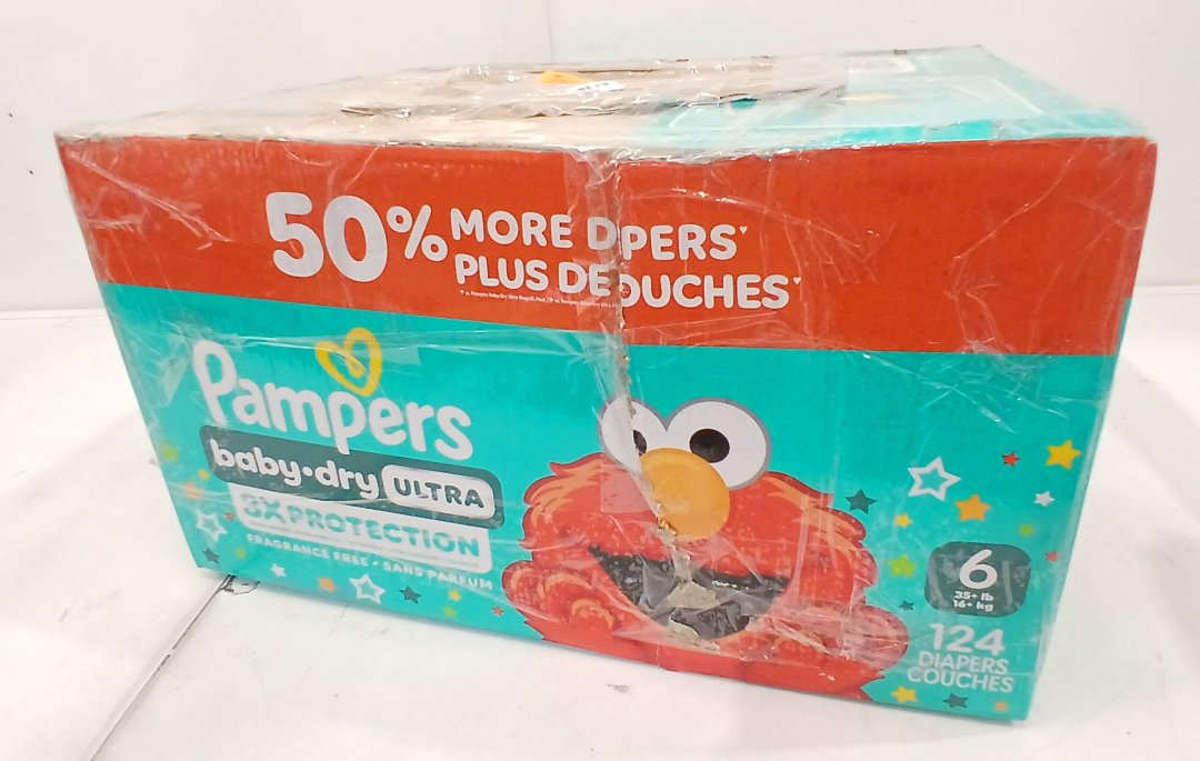 124PK pampers baby dry ultra fragrance free 3x protection - size 6 (35+ lb)