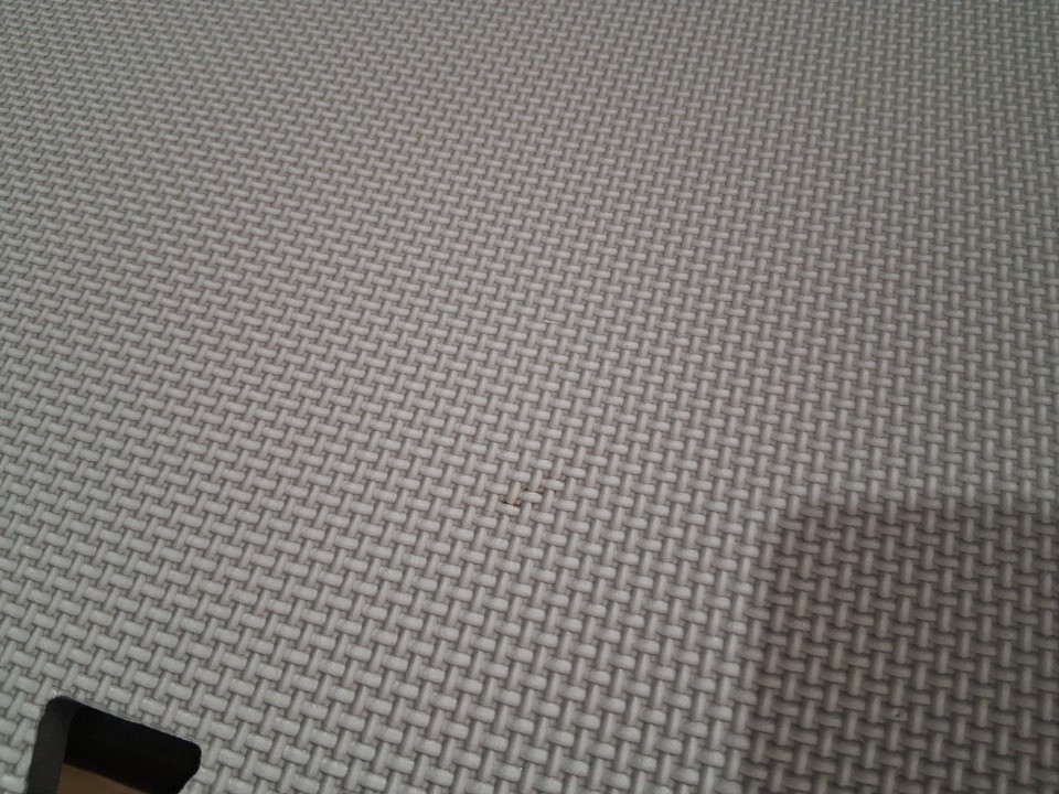 item has a very small dark mark on one of the foam mats ( see photos)