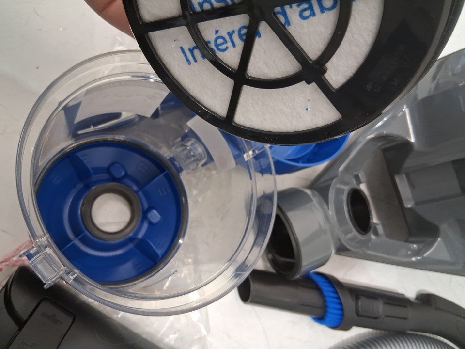+Tested for power and suction. Dust collection container seems to have a broken locking tab. Small blemishes/debris would suggest light use.