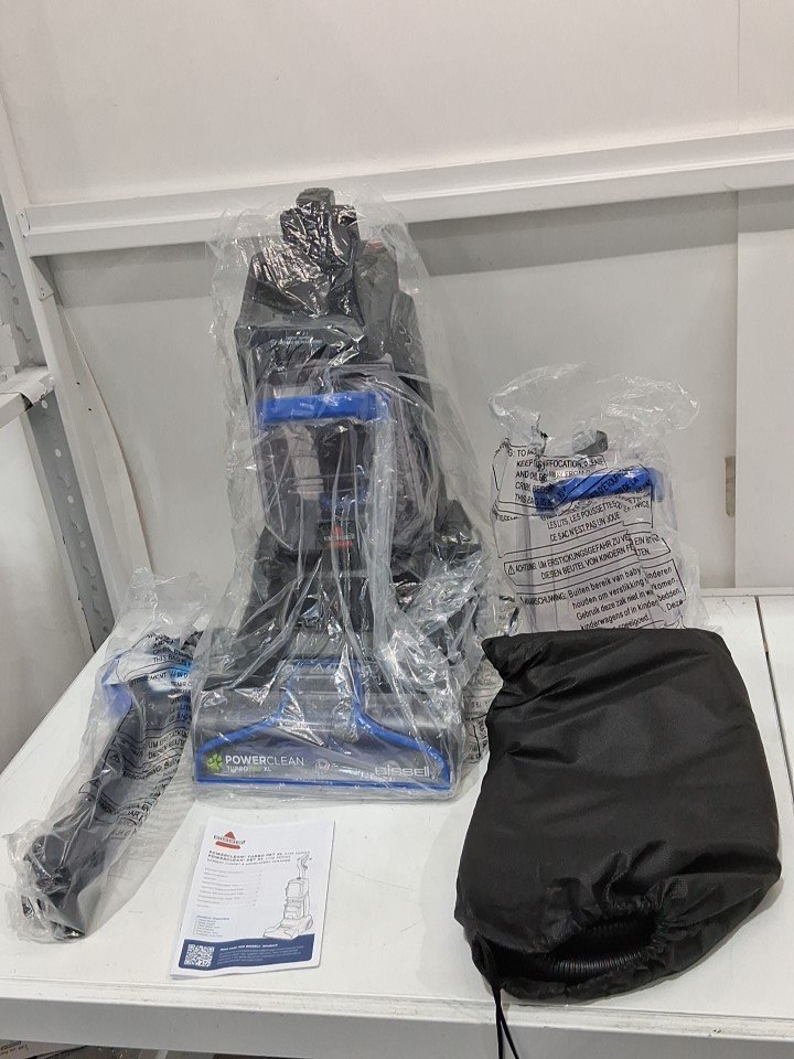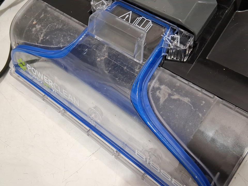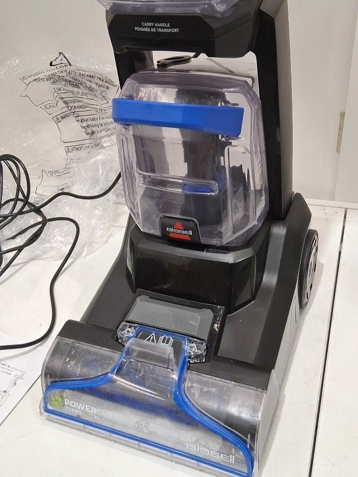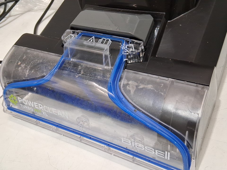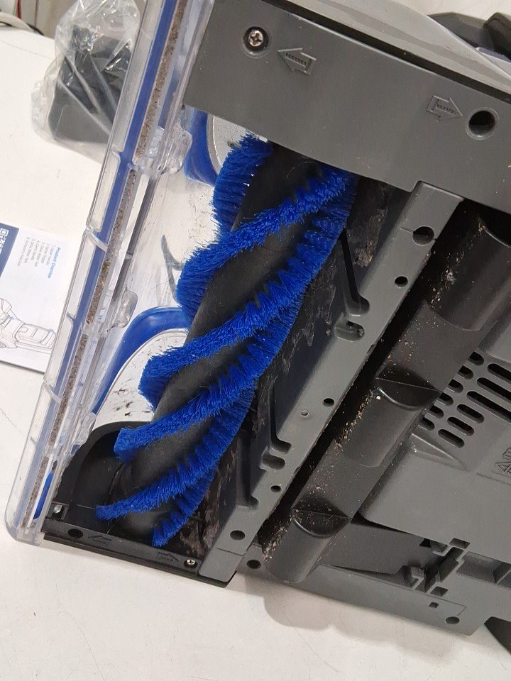 **Tested for power.** Item has minor debris/wear around the main roller brush and reservoirs, light markings along the exterior from previous gentle use, see photos.