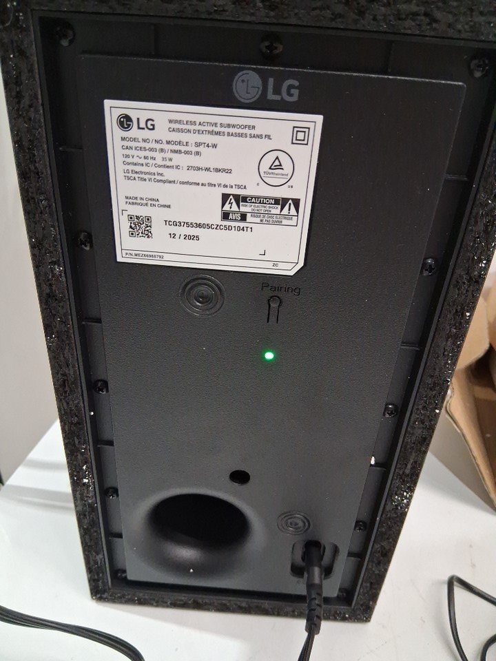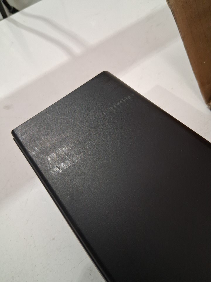 There are some scratches on the sound bar indicating previous handling and potential use. Please note that the power cords are not included (see photos) Speaker tested for power, but unable to test soundbar