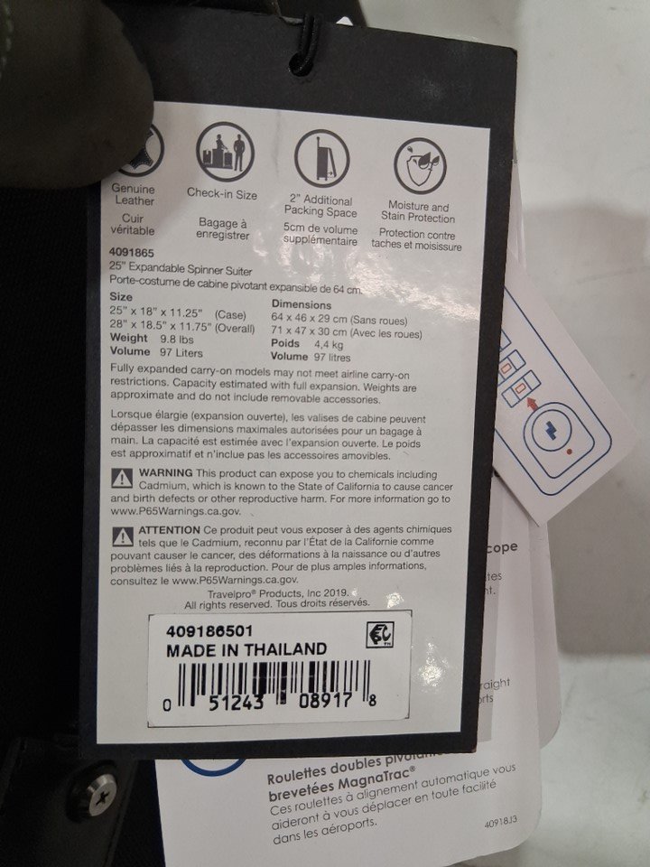 Travelpro Platinum Elite soft side Expandable Spinner Luggage/suitcase - 25" X 18" X 11.25" - Shadow Black (MODEL: 409186501)