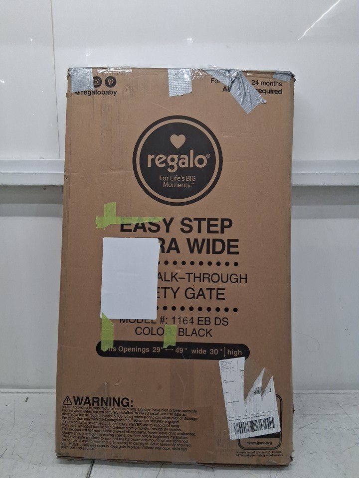REGALO EASY STEP EXTRA WIDE METAL SAFETY GATE - 30" x 29" - 49" - BLACK (MODEL: 1164EBDS)