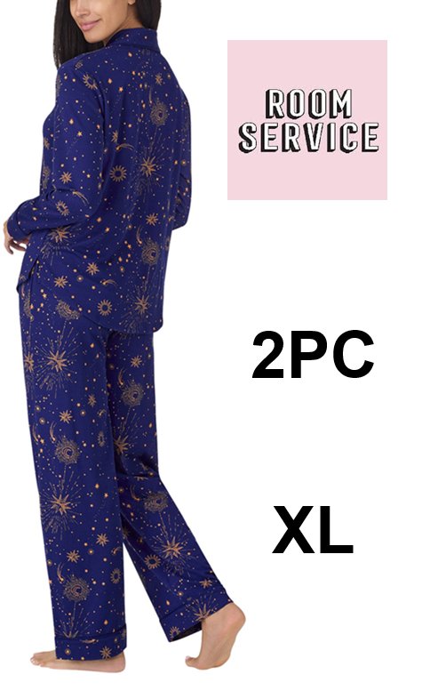 Women's Room Service Shawl Collar Pajama Set - extra large - blue with gold stars (style: 1932323)
