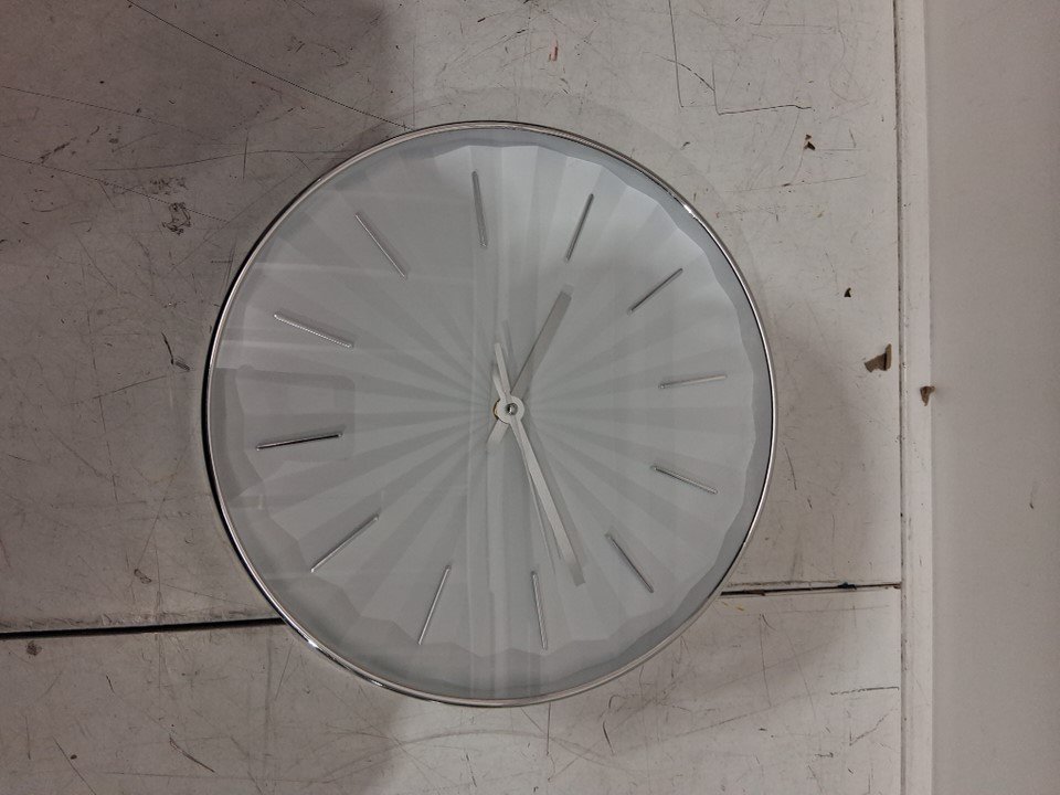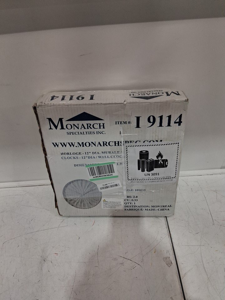 monarch specialties modern contemporary wall clock - 12" - chrome/white - (model: 9114)