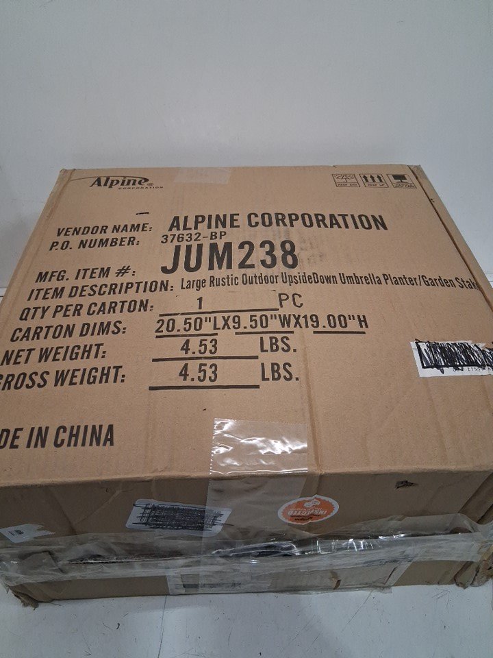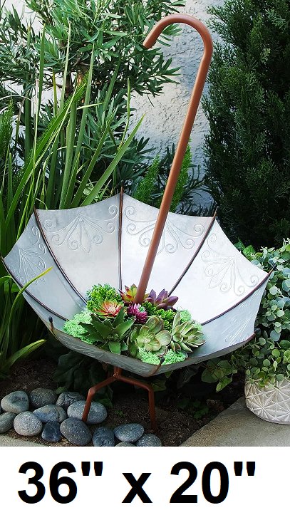 Alpine corporation outdoor rustic upsidown umbrella garden stake and planter - 36" x 20" - Silver/brown (Model: JUM238)