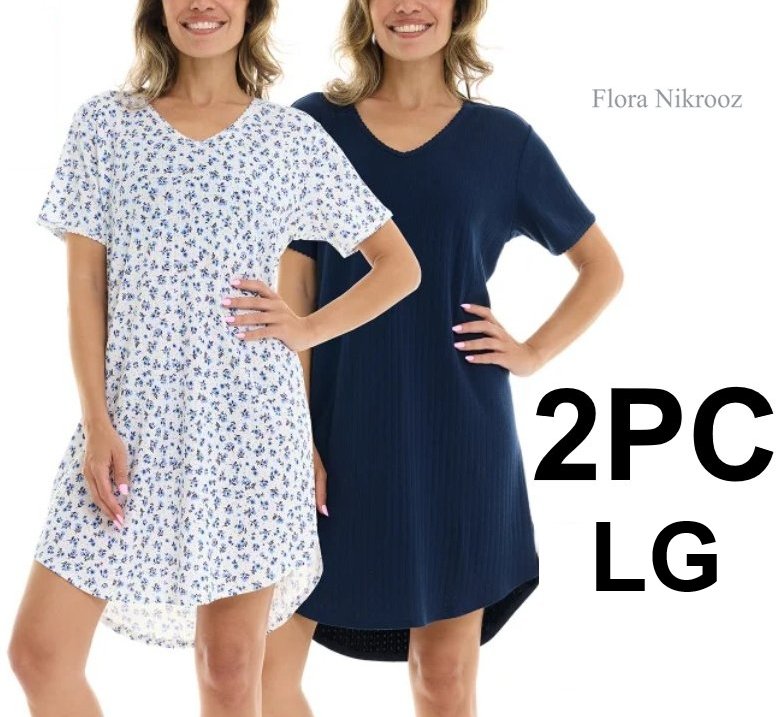 2pc womens Flora Nikrooz Cotton pajama Sleep Dress - large - navy/blue floral (Style: 2765222)
