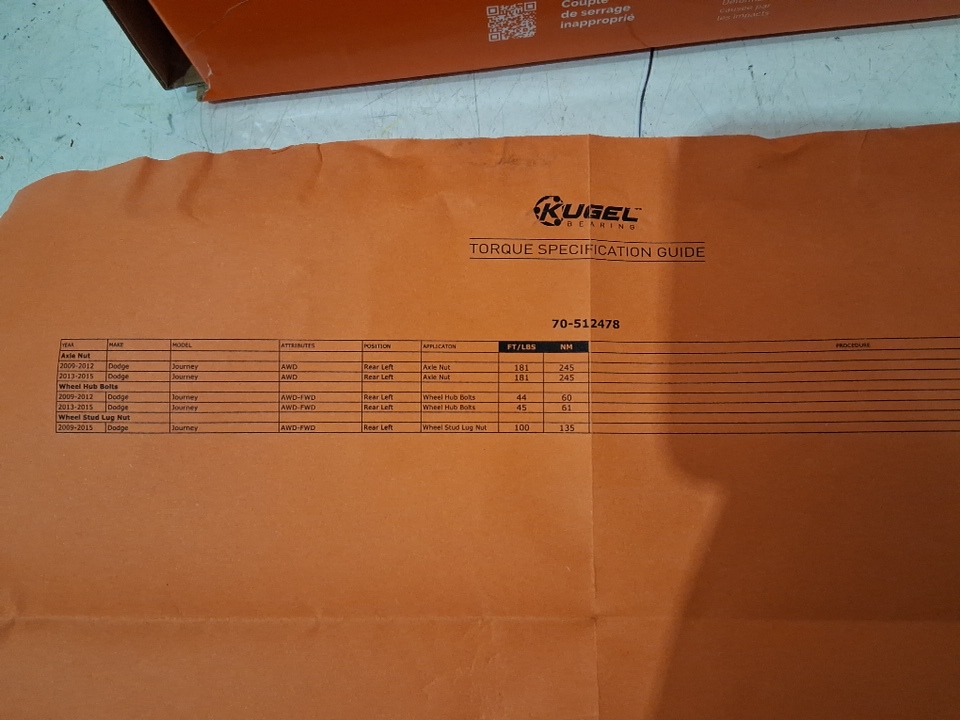 Kugel Rear Left (Driver Side) Wheel Bearing Hub Assembly for Dodge Journey (2009 - 2020) - chrome (model- 70-512478)