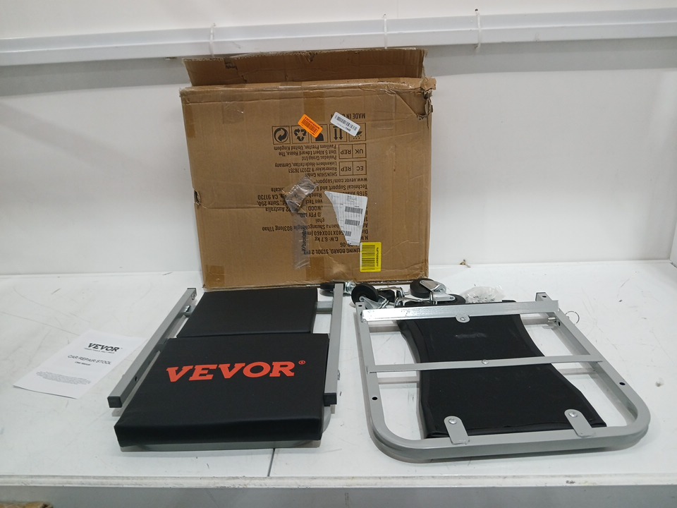FOLDABLE 2-IN-1 ROLLING CAR eZ-CREEPER SEAT STEEL & VINYL car repair stool - 300LB CAP - BLACK (model: gb-06)