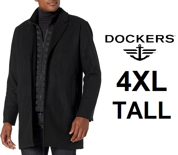 men's dockers henry wool blend top coat - 4xl tall - black