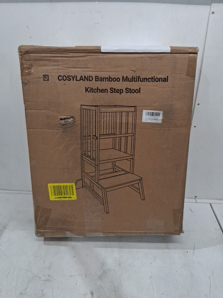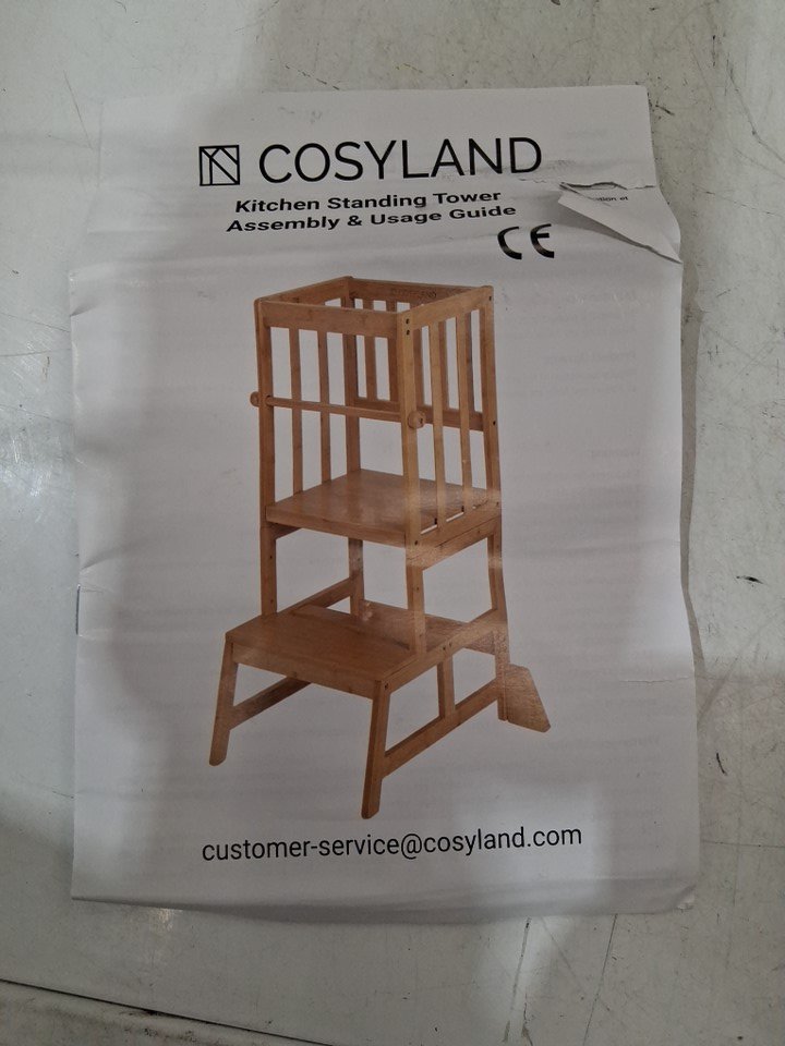 COSYLAND Height Adjustable Toddler Standing Tower Kitchen Step Stool - 35" x 18" - Blonde Bamboo (model: CS00120-1-CA)