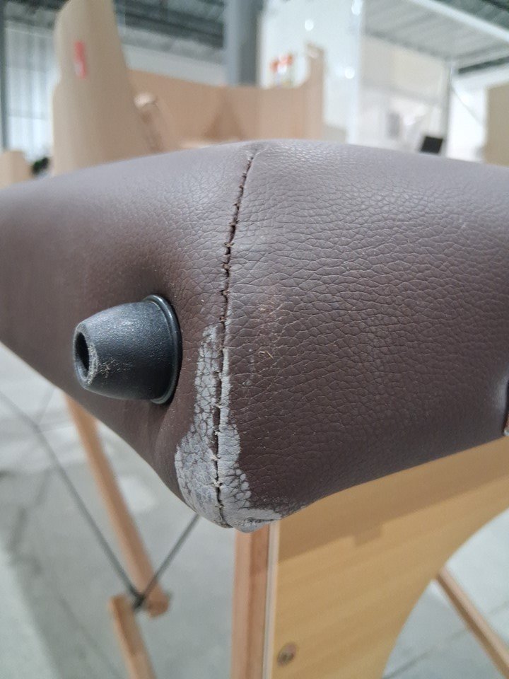the item has some dust due to inspection on the floor in a warehouse and missing one screw on the bottom legs, still able to function it without the screw. (see photos).