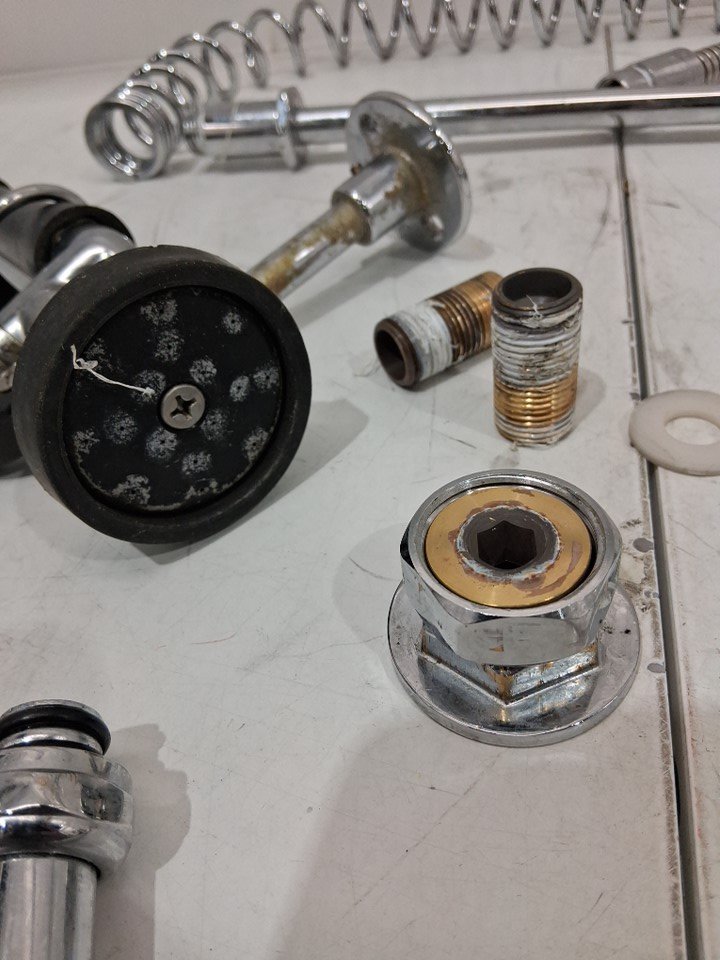 Item shows signs of use. Dirt build-up/residue present throughout the item. In addition, hook to hang sprayer from is missing. Item may also be missing additional install hardware, such as rubber rings & washers (see photos).