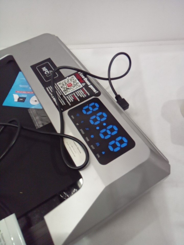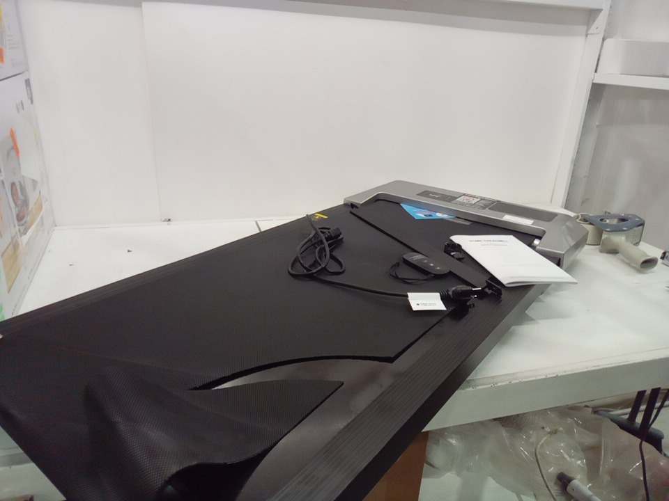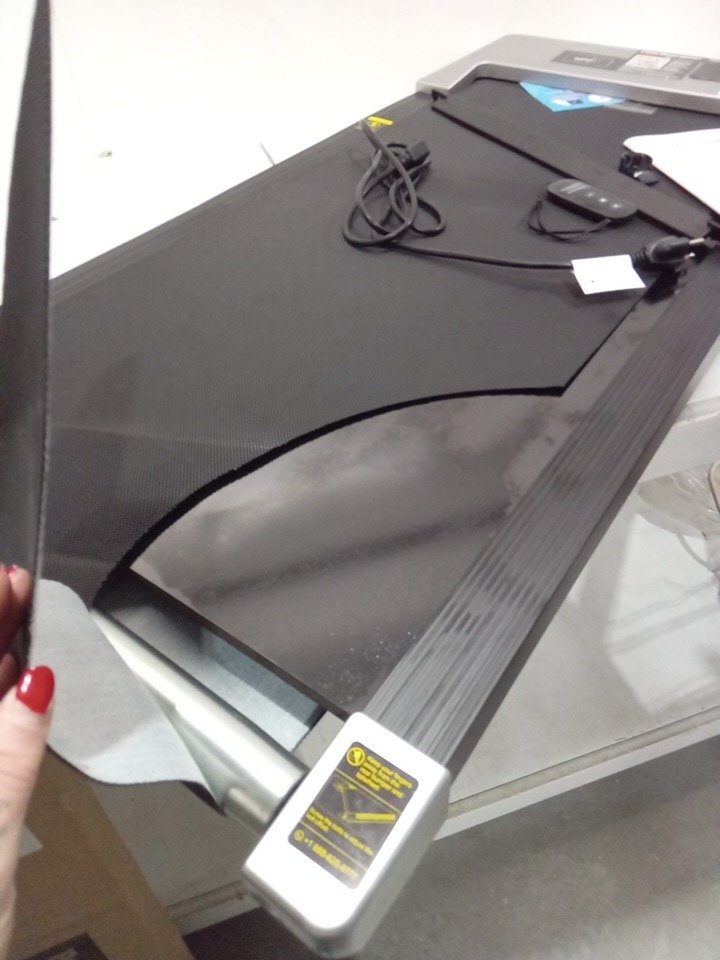 please note that the belt broke and also the one wheel broke off and the middle bar on the back of the treadmill is detached. see photos please. tested for power. belt can be replaced.