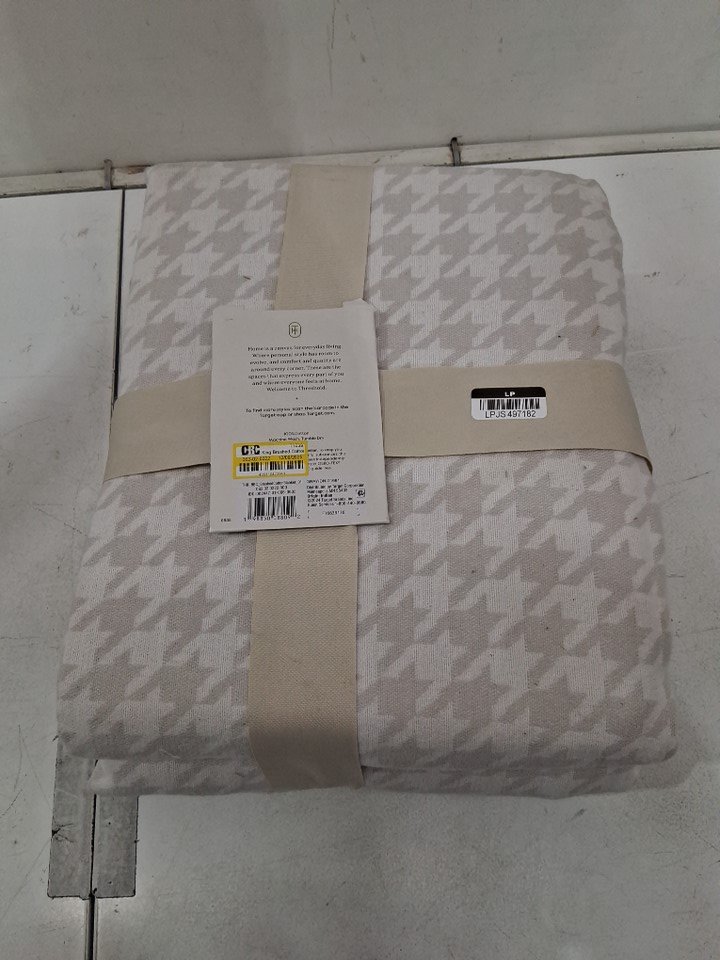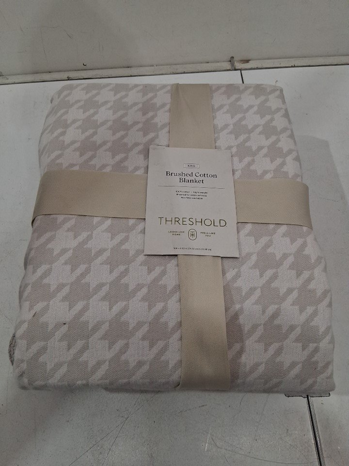 threshold brushed cotton blanket - king (92" x 66") - grey houndstooth (model: 062-02-0222)