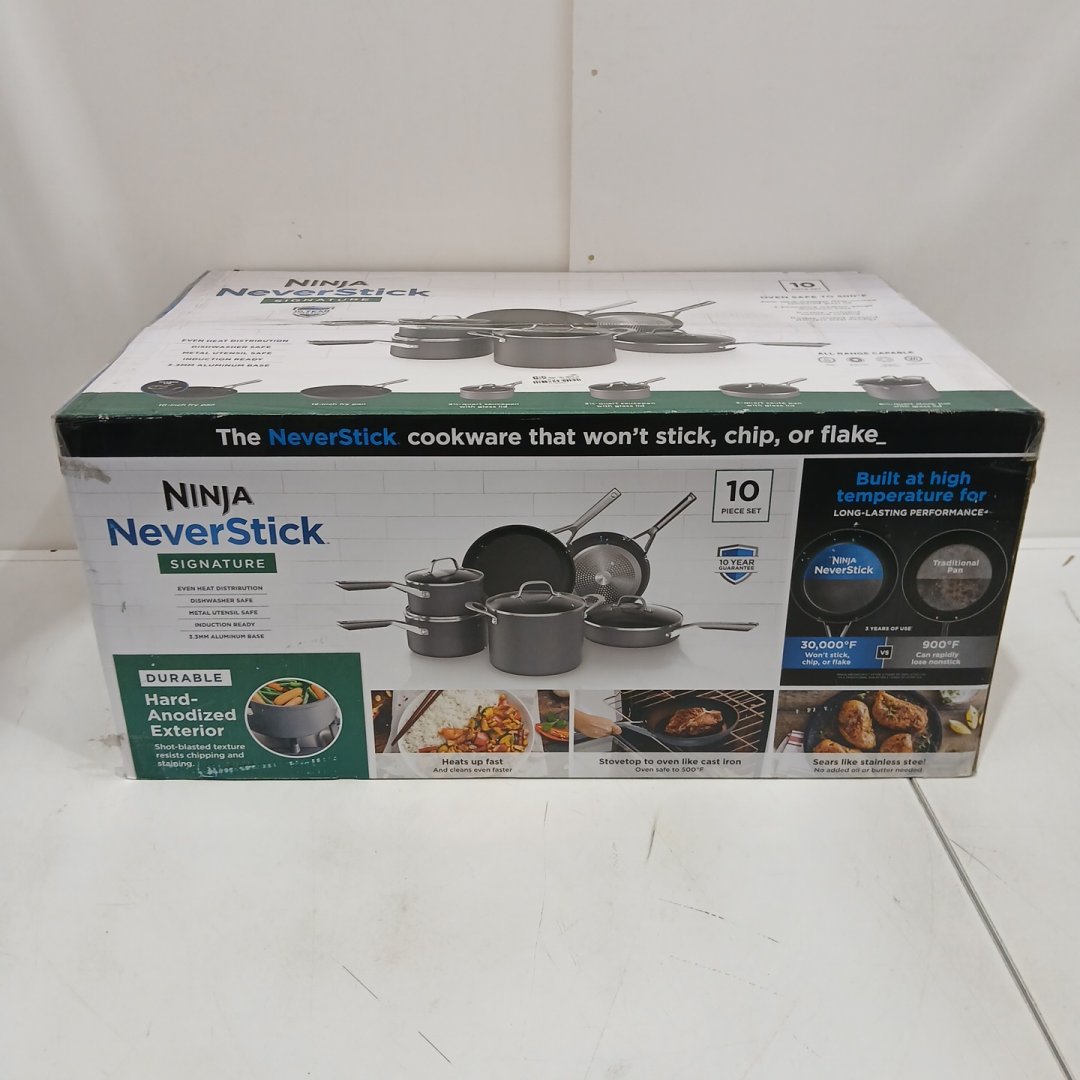 10PC NINJA NeverStick Signature Hard-Anodized cookware set - black (model: CW79010a)