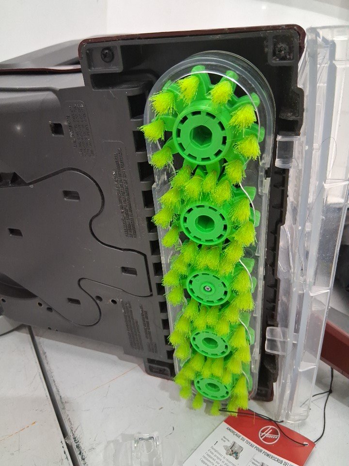 item has some fuzz/hair on main brush and some water residue on tank from previous use tested for power and functionality