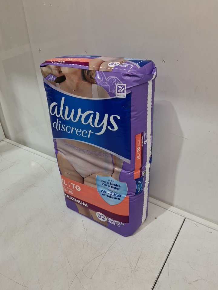 32PK Always Discreet Adult Women Incontinence Underwear, Doubles as Postpartum Underwear, Size XL - Up to 100% Bladder Leak Protection