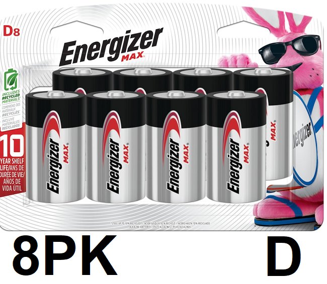 8PK ENERGIZER max alkaline "d" batteries