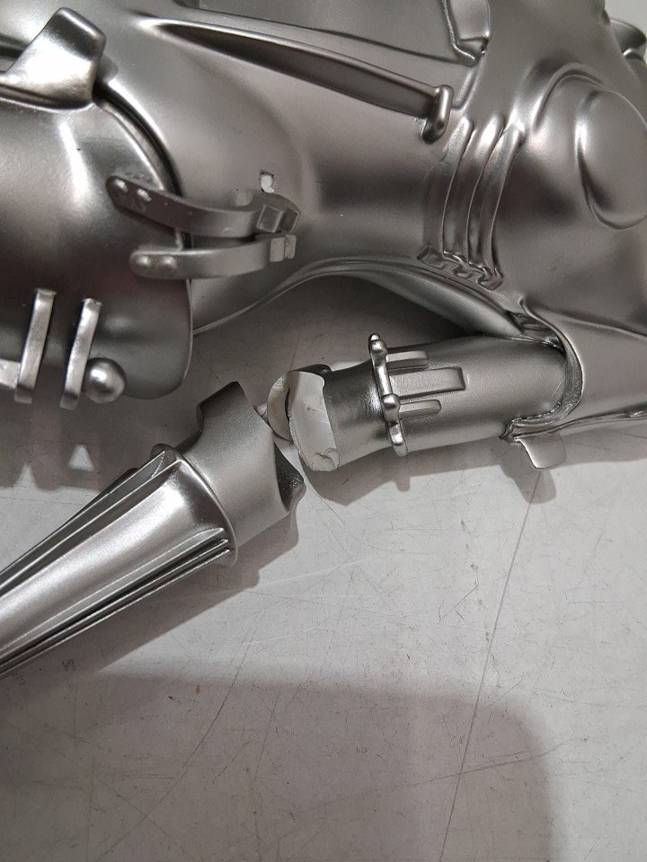Item arrived with one of the arms broken off at the elbow which appears repairable, see photos.