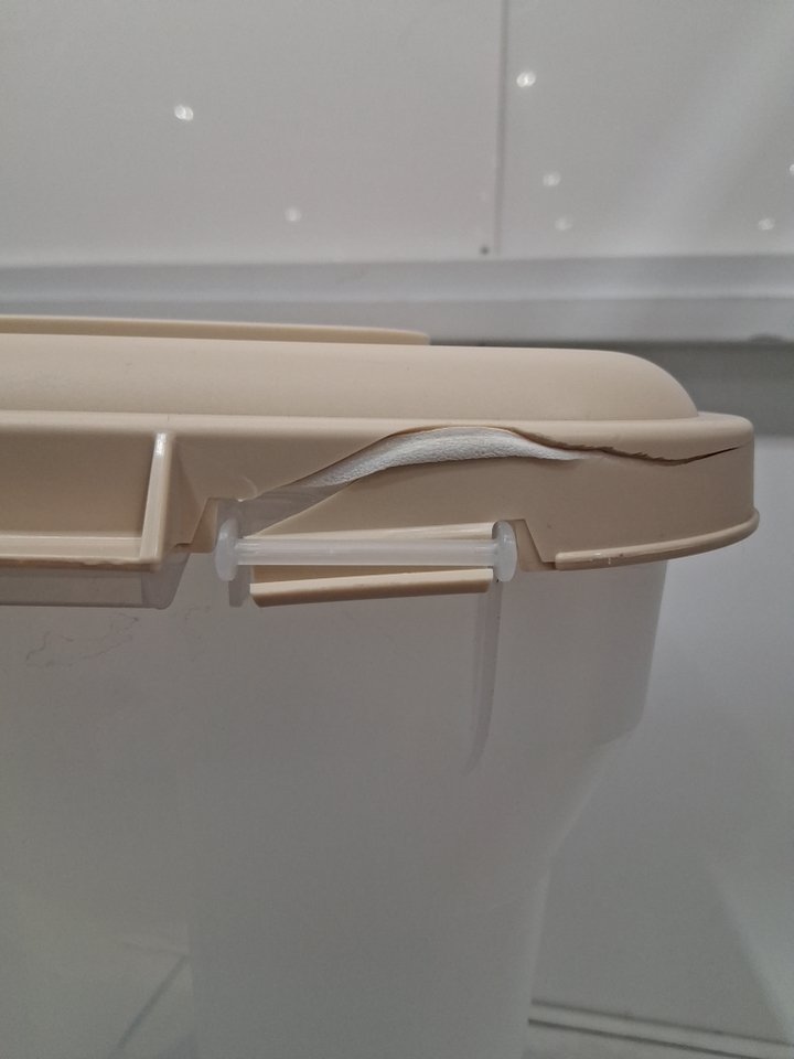 Please note that one of the hinges on the back is cracked/broken. Lid still snaps shut (see photos).