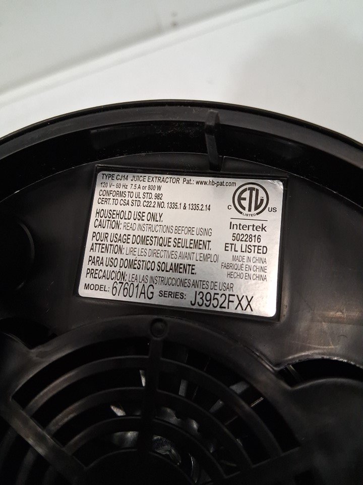 HAMILTON BEACH BIG MOUTH JUICE EXTRACTOR WITH 3" CHUTE - 800W - BLACK (MODEL: 67601Ag)