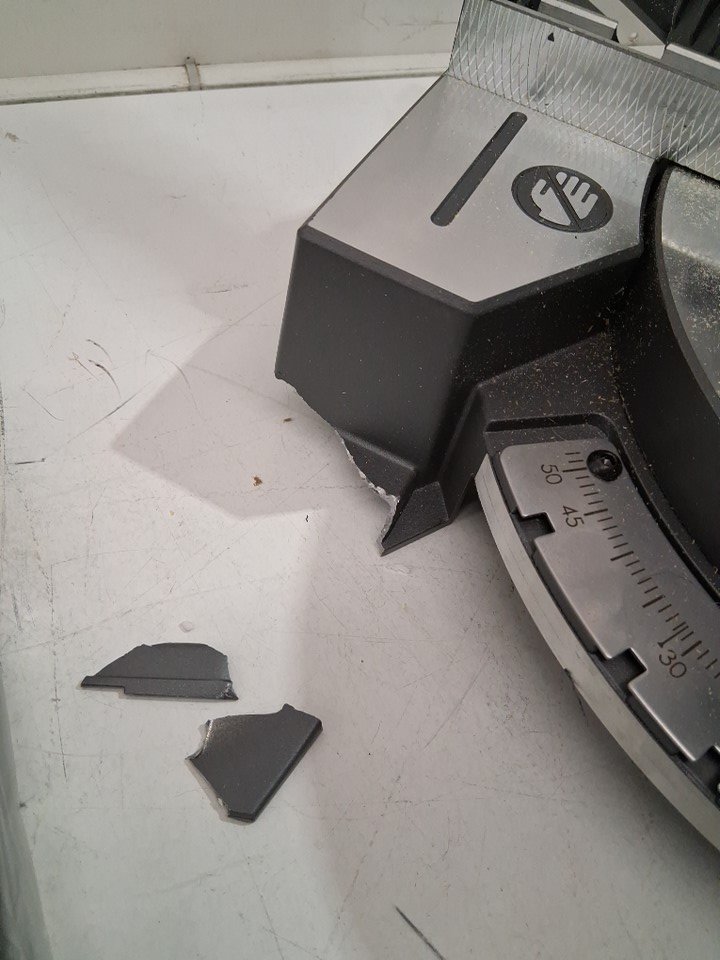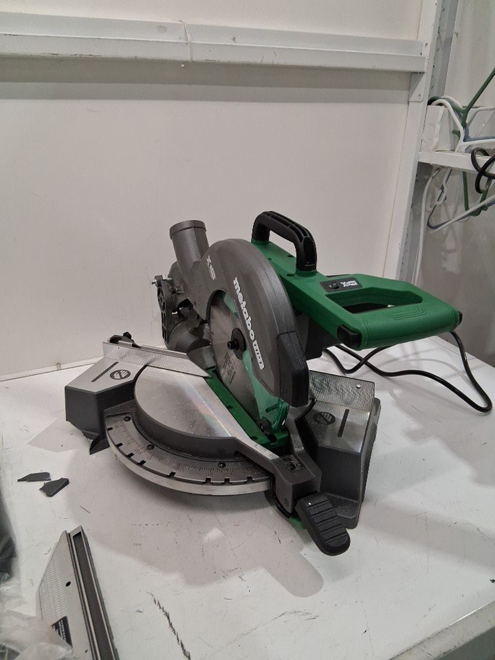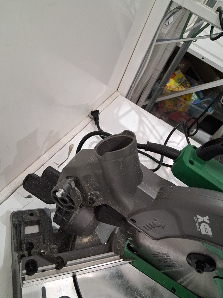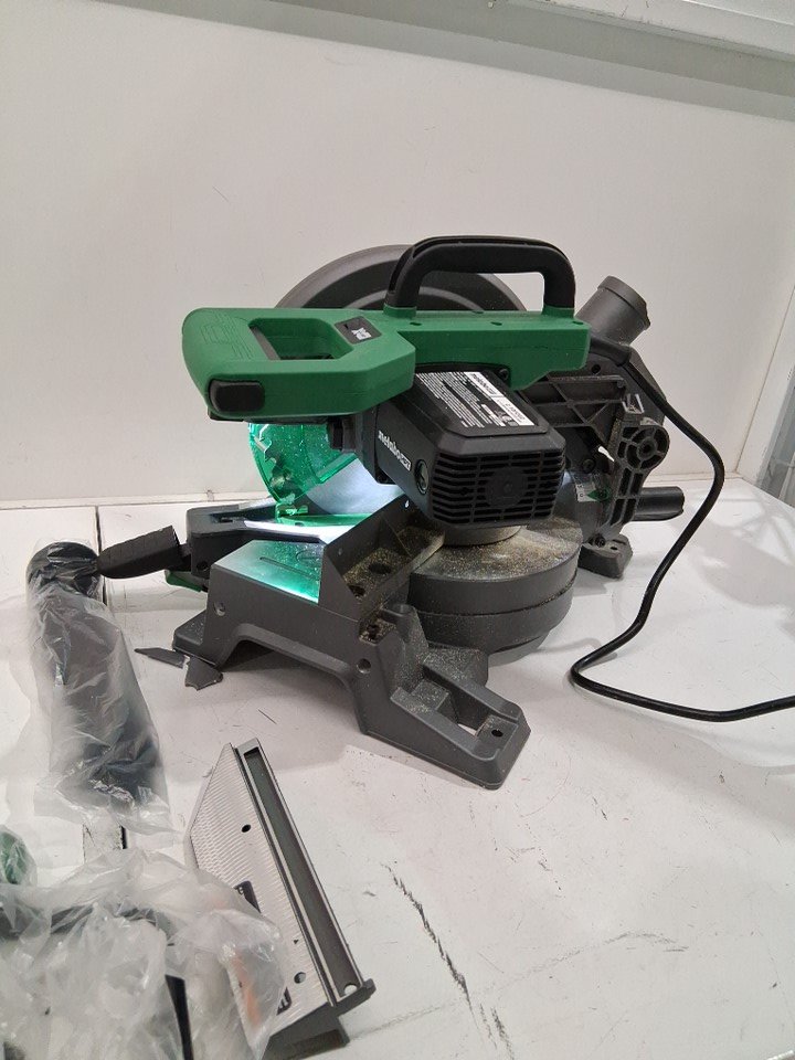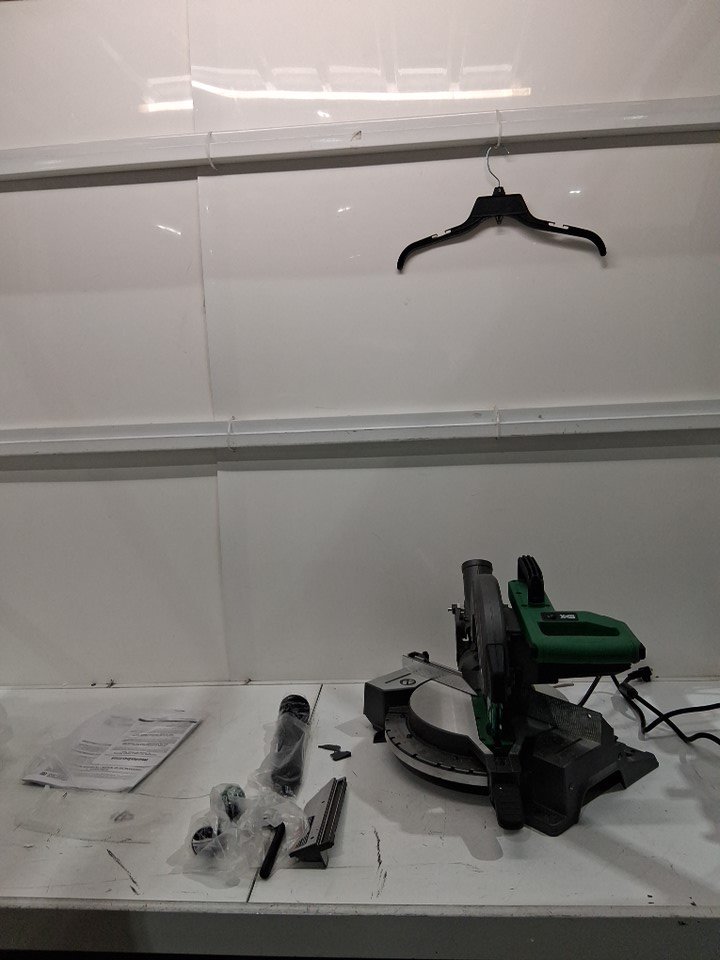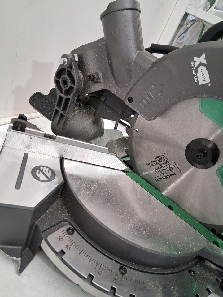 Product has sawdust present through out the saw area and also on the exterior of the product as well however product was tested for power.