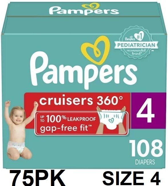 75PK PAMPERS PULL ON CRUISERS 360° FIT GAP-FREE FIT DISPOSABLE BABY DIAPERS - SIZE 4 /22LB- 37lb