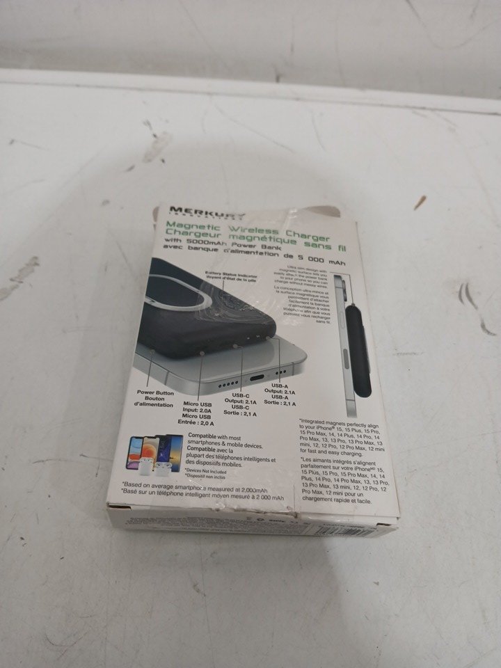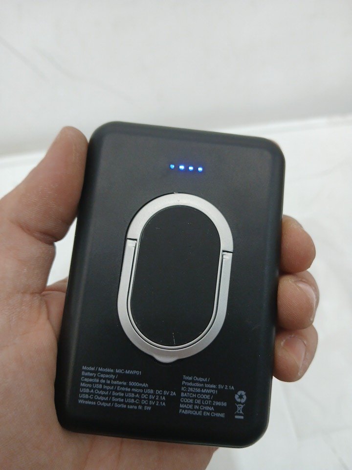 Please note the magnetic wireless charger is broken, and will either need to be mended of left alone to be used as a regular power bank. See photos.