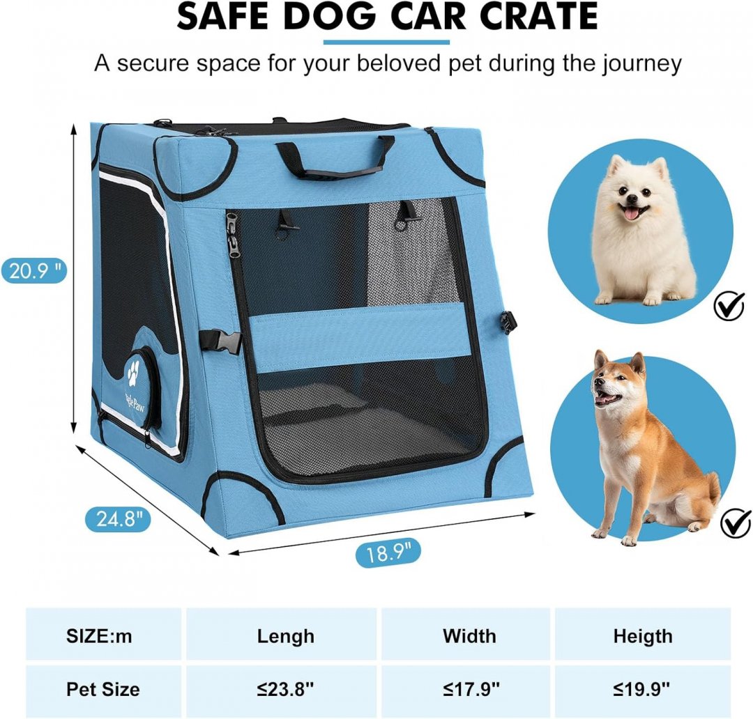 Snagle Paw Portable Dog Crate for Car Travel - medium - blue