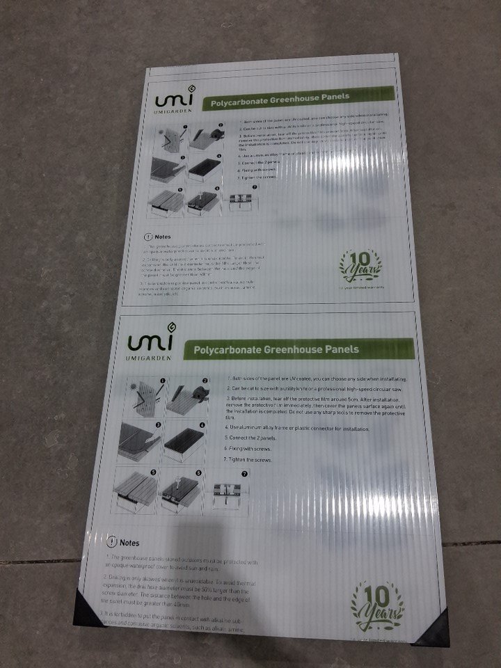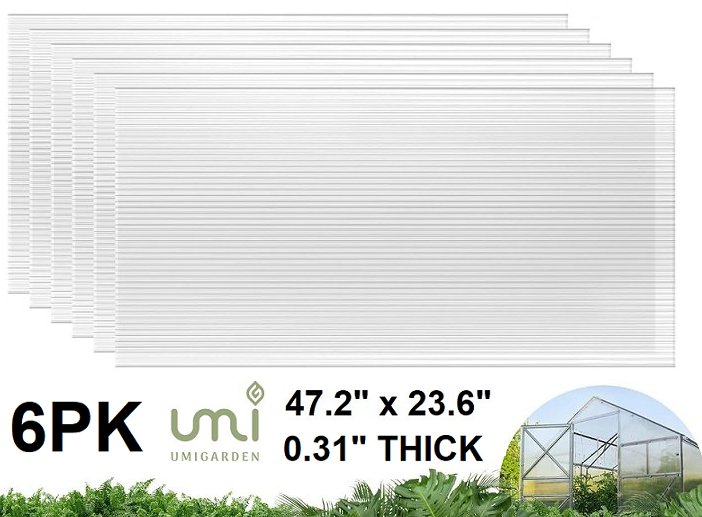 6PK UMIGARDEN TWIN-WALL WATERPROOF POLYCARBONATE OUTDOOR GREENHOUSE ROOF SHEETS - 47.2" X 23.6" X 0.31"