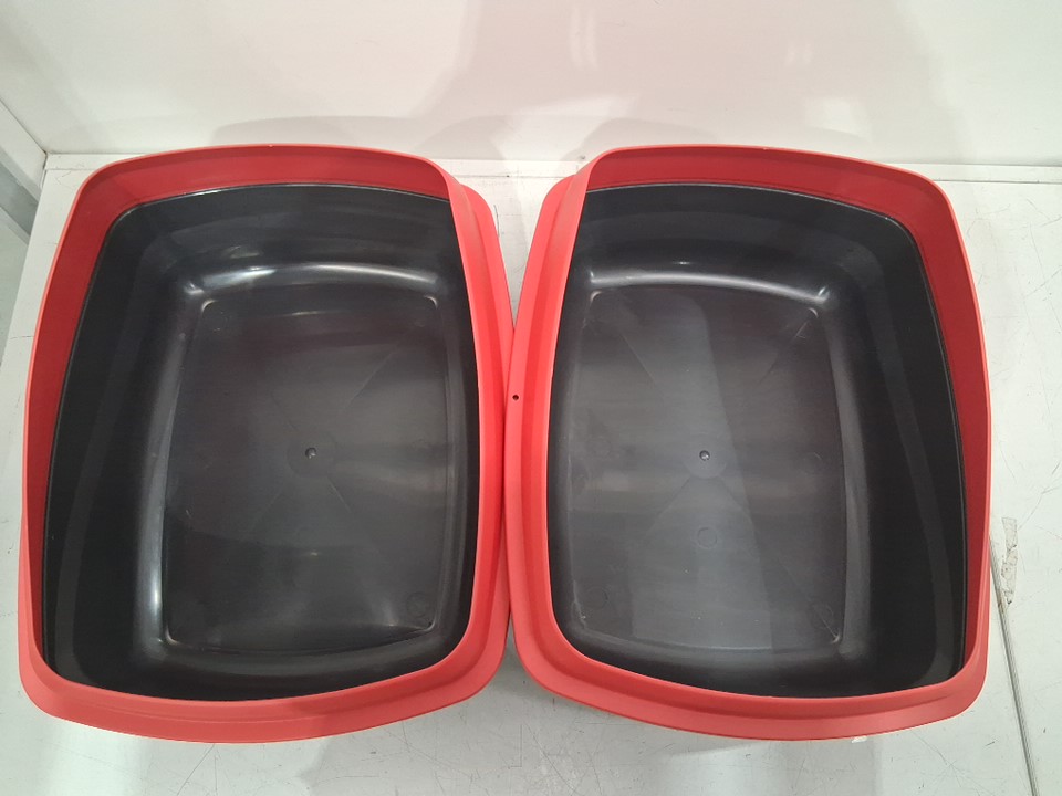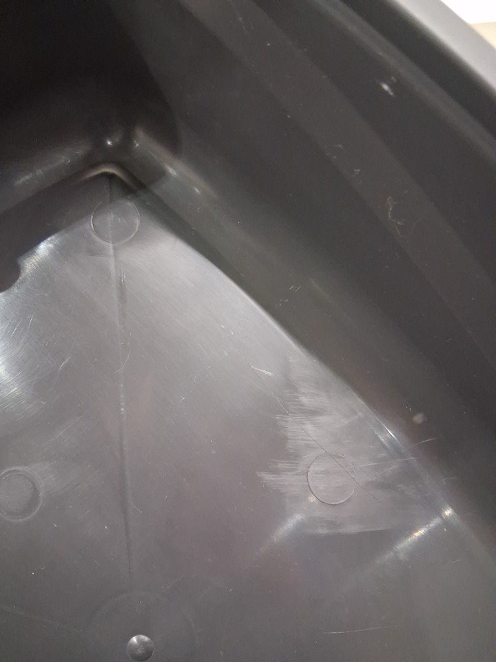 There are a couple of minor scratches on the bottom of the litter pan due to previous use, and there is also a little bit of cat hair. They will only need a quick wipe down before use.
