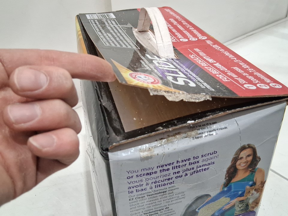 Item arrived distressed with a few grains slipping through the bottom flaps however item has been weighed and appears to contain the advertised amount of litter, see photos.