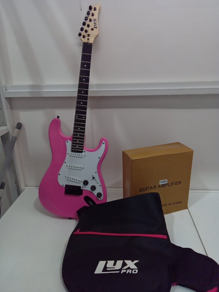 LyxPro Electric Guitar Complete Beginner Starter kit Full Size with 20w Amp - 39" - RIGHT HANDED - pink/white