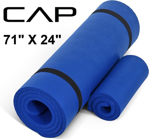 CAP Barbell 1/2-Inch-High Density Exercise Yoga Mat with Strap - 71" x 24" - blue - (model: mtis-6523-12bl)