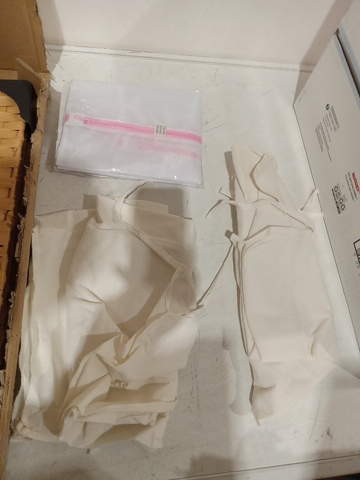 Greenstell Synthetic Rattan Laundry Hamper with Lid with 2 Removable Liner Bags - 110L - 99LBS CAP - LIGHT WOOD/WHITE (MODEL: LH005-V2-E)