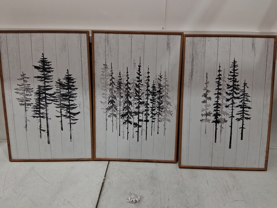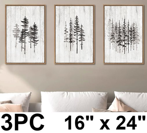 3pc hpinub rustic tree forest framed canvas wall art - 16" x 24" - wood frame - black/white forest (model: hsp1-58ps)