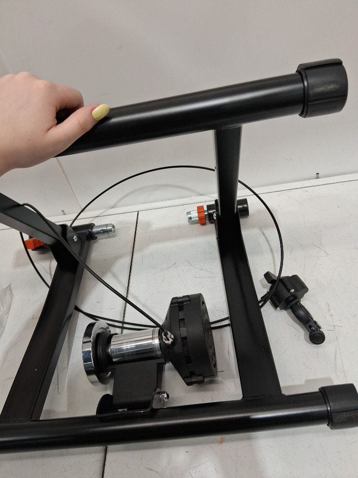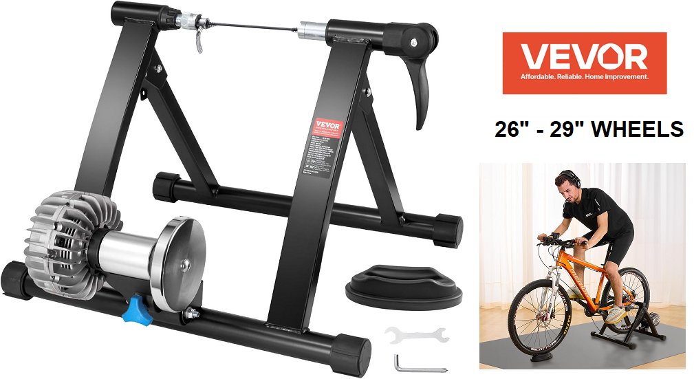 portable stationary Bike Trainer Stand with Quick-Release Lever & Front Wheel Rise - for 26" - 29" wheels - black/silver - (model: hs-qx-009b)