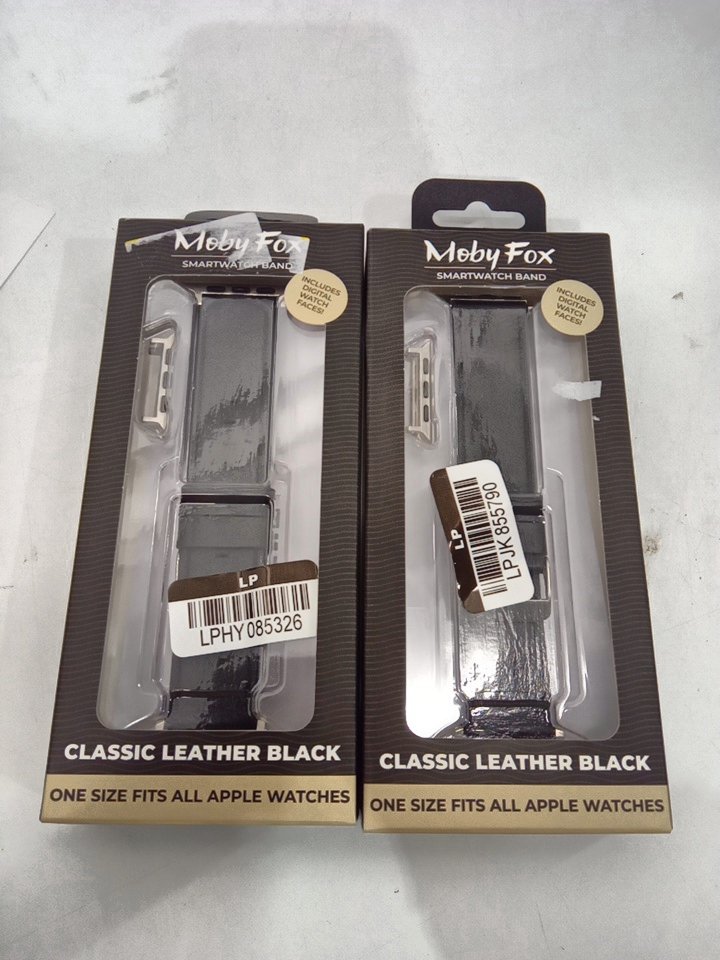 2 unisex moby fox classic leather smartwatch bands - one size fits most apple smart watches - black