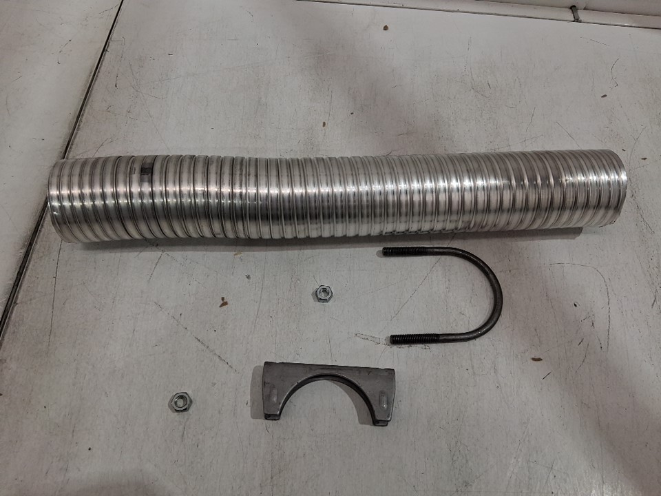 • The product shows signs of previous use with some oil/grease on the clamp pieces. • There is a small chip/indent on side of the pipe, see photos.